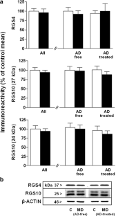 Muma NA, Mariyappa R, Williams K, Lee JM (2003) Differences in regional and subcellular localization of G(q/11) and RGS4 protein levels in Alzheimer's disease: correlation with muscarinic M1 receptor binding parameters. Synapse 47:58–65