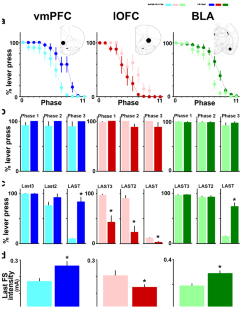 Our results demonstrate a strong role of the vmPFC and BLA and their interactions in reward restraint to avoid punishment and a prominent role of the lOFC in reward-seeking under reward/punishment conflict situations.