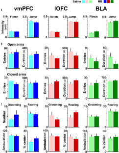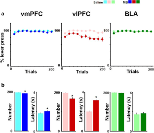 Bilateral inactivation of the vmPFC, lOFC, and BLA did not alter lever press responses at the early stage of the task. The number of lever presses increased following vmPFC and BLA inactivation but decreased following lOFC inactivation during the later stage of the task. The last intensity was elevated by vmPFC or BLA inactivation but lowered by lOFC inactivation. Disconnection of the vmPFC-BLA pathway induced behavioral alterations that were similar to vmPFC or BLA inactivation. Inactivation of any regions did not alter footshock sensitivity and anxiety levels.
