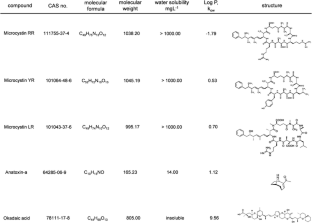 Namikoshi M, Rinehart KL, Sakai R, Stotts RR, Dahlem AM, Beasley VR, Carmichael WW, Evans WR (1992) Identification of 12 hepatotoxins from a homer lake bloom of the cyanobacteria Microcystis aeruginosa, Microcystis viridis, and Microcystis wesenbergii: nine new microcystins. J Org Chem 57(3):866–872