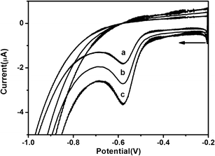 This paper reports the electroanalytical determination of pendimethalin and ethyl parathion by square-wave adsorptive stripping voltammetry using a material comprised of chitosan-stabilized silver nanoparticles to modify a glassy carbon electrode. Under optimized experimental conditions, the peak current was found to vary linearly with the concentration of pendimethalin in the range of 70 to 2000 nmol L−1 and with concentration of ethyl parathion in the range of 40 to 8000 nmol L−1. Detection limits of 36 and 40 nmol L−1 were obtained for pendimethalin and ethyl parathion, respectively. The silver - nanoparticle-modified electrode was successfully employed for the analysis of pesticides in tap and mineral water (pendimethalin) and in lettuce and honey (ethyl parathion) samples. Pendimethalin recovery was between 94 and 100 %, and ethyl parathion recovery was between 97 and 101 %, indicating no significant matrix interference effects on the analytical results. The accuracy of the electroanalytical methodology using the proposed modified electrode was also compared to that of the UV–vis spectrophotometric method.