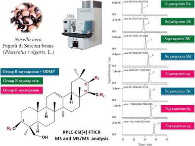 The first detailed RPLC-ESI(+) FTICR-MS investigation of the qualitative and semiquantitative profile of soyasaponins, occurring in 21 ecotypes of Fagioli di Sarconi beans (P. vulgaris L.).