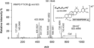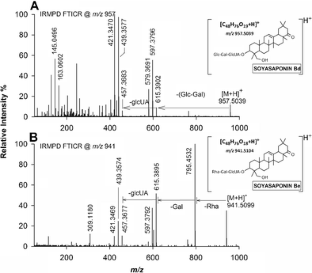 Bianco G, Buchicchio A, Cataldi TRI. Structural characterization of major soyasaponins in traditional cultivars of Fagioli di Sarconi beans investigated by high-resolution tandem mass spectrometry. Anal Bioanal Chem. 2015;407:6381–9. https://doi.org/10.1007/s00216-015-8810-3.