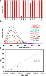 Dong Y, Wang R, Li G, Chen C, Chi Y, Chen G. Polyamine-functionalized carbon quantum dots as fluorescent probes for selective and sensitive detection of copper ions. Anal Chem. 2012;84(14):6220–4.