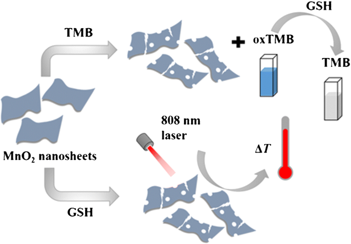 Ma Z, Wu T, Li P, Liu M, Huang S, Li H, et al. A dual (colorimetric and fluorometric) detection scheme for glutathione and silver (I) based on the oxidase mimicking activity of MnO2 nanosheets. Microchim Acta. 2019;186(8):498.
