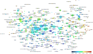 The aim of this work is to realize a term map analysis on technological advancements, in the year and in the world, of scientific researches of food traceability. Quality protection needs efficient instruments to discriminate Protected Denomination of Origin and Protected Geographical Indication varieties in field and to trace them along the agri-food chain. This study attempts to analyze global scientific of food traceability researches (between 1999 and 2018). In this period, 2534 scientific publications by Scopus database were found. Publication trends, research topics and their geographical distribution were analyzed by science mapping (VOSviewer software). Term map evidenced four main groups: red cluster with terms about food product and analytical methods for the characterization of food; green cluster including terms related with consumer (e.g., “food safety” and “food packaging”); blue cluster associating terms with the technology for traceability and yellow cluster with identification of food by genetic marker. It is possible to observe many links (i.e., co-occurrence between terms) in the green and blue clusters and among them. The yellow cluster could be considered as a subcategory of red one. In addition, green cluster refers to consumer and food safety. Yellow and red clusters contain analytical methods to identify food product, while blue cluster refers to advancements technological transferring information about the product to the consumer. These clusters do not present many linkages, and the consumer is in-between these. Finally, this study contributes to a better knowing of food traceability, and to an enhanced scientific research of technological advancements in supply chain.