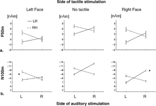 Ackermann H, Hertrich I, Mathiak K, Lutzenberger W (2001) Contralaterality of cortical auditory processing at the level of the M50/M100 complex and the mismatch field: a whole-head magnetoencephalography study. Neuroreport 12(8):1683–1687