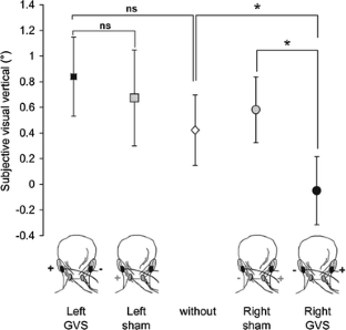 Zink R, Bucher SF, Weiss A, Brandt T, Dieterich M (1998) Effects of galvanic vestibular stimulation on otolithic and semicircular canal eye movements and perceived vertical. Electroencephalogr Clin Neurophysiol 107:200–205
