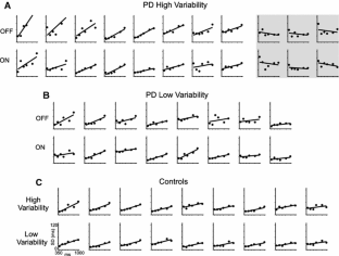 O’Boyle DJ, Freeman JS, Cody FW (1996) The accuracy and precision of timing of self-paced, repetitive movements in subjects with Parkinson’s disease. Brain 119:51–70