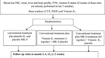 Y Somekawa M Chigughi M Harada T Ishibashi (1999) ArticleTitleUse of vitamin K2 (menatetrenone) and 1,25-dihydroxyvitamin D3 in the prevention of bone loss induced by leuprolide. J Clin Endocrinol Metab 84 2700–2704 Occurrence Handle1:CAS:528:DyaK1MXltFClsbo%3D Occurrence Handle10443663