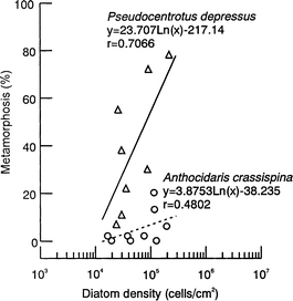 Tani Y, Ito Y (1979) Effects of benthic diatoms on settlement and metamorphosis of the sea urchin, Pseudocentrotus depressus (in Japanese with English abstract). Suisanzoshoku 27:148–150