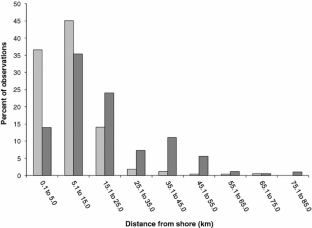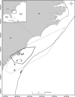 Thirty-four juvenile loggerhead sea turtles captured by trawling from the Charleston, South Carolina (USA), shipping channel (32°42′N; −79°47′W) between May 2004 and August 2007 were tagged with satellite transmitters to assess the extent to which they remained near the capture location given their collection along a seasonal migratory corridor. Seventy-five percent of juveniles were classified as seasonal residents. Migrants predominantly swam north in the spring and nomads wandered south in the summer, but predictive indicators for non-resident status were not identified. All but one juvenile generally remained south of 34°N, within 40 km of shore, and in waters <30 m deep throughout the year. Nine of 14 loggerhead sea turtles monitored during the winter remained exclusively over the continental shelf, three briefly occurred in oceanic habitats, and two foraged extensively in oceanic habitats. Residents distributed >15 km from shore between spring and autumn were three times as likely to occur in oceanic habitats in winter. Modest seasonal movements contrasted with adults tagged at similar latitudes and with juveniles tagged further north and suggest distinct foraging groups within a regional foraging ground.