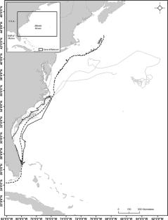 We thank the captains and crew of the RVs Georgia Bulldog and Lady Lisa and numerous volunteers who assisted with satellite transmitter attachment and routine sea turtle data collection. S. Hopkins-Murphy, T. Murphy, D. Griffin and J. Coker (SCDNR); K. Mansfield (NMFS), T. Tucker (Mote Marine); D. Shaw, J. Sparks and W. Harrison (CLS America); B. Burger and S. Tomkiewicz (Telonics); and M. Coyne and B. Godley (STAT) charted a smooth course into the world of satellite telemetry. We thank W. Stringfield and J. Shelton (USGS) for provision of hydrographic data for station 02172100. Funding was provided by NOAA Fisheries grant NA03NMF4720281, and we thank J. Brown (NMFS) and E. Heyward for grants management assistance. This research was conducted under Section 10(a)(1)(A) sea turtle permit #1540, and we thank P. Opay and K. Swails (NMFS) for support and assistance. We thank J. Schwenter (SCDNR) and anonymous journal reviewers for editorial contributions. This is contribution #687 of the Marine Resources Division of the South Carolina Department of Natural Resources and contribution #378 of the Grice Marine Biology Laboratory of the College of Charleston.