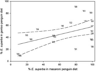 We thank all members of the Bird Island science team who have sampled gentoo penguin diets over the last three decades. Thanks to Mark Belchier, Iain Staniland, and Norman Ratcliffe (British Antarctic Survey) for comments on an earlier draft. This work is a contribution to the ECOSYSTEMS programme at the British Antarctic Survey.
