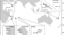 We declare that all applicable international, national and/or institutional guidelines for sampling, care and experimental use of organisms for the study have been followed and all necessary approvals have been obtained: New Caledonia: authorization n° 2432-2012/ARR/DENV, n° 2660-2013/ARR/DENV, n° 60912-25-28-2012/JJC, n° 60455-15-25/JJC, n° 6161-37/PR. Reunion Island: authorization n° 20-2015/DEAL/SEB/UBIO. Madagascar: authorization n° 16/1040-AE/SG/DAJC/SAG/NAV/FRANCE. Rodrigues Island: authorization n° MU 140897/Regional Assembly. Mayotte: authorization n° 2016-31/DMSOI. Juan de Nova: authorization n° 2013-66/TAAF.
