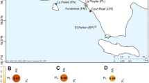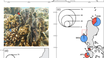 Identical multilocus genotypes (MLGs) that were likely to be the result of fragmentation of the coral colony were identified with the software GenAlEx 6.503 (Peakall and Smouse 2012). The departure from Hardy–Weinberg equilibrium (HWE) was determined for each locus using FSTAT 2.9.3 (Goudet 1995) and presented as FIS (calculated as smallF (Weir and Cockerham 1984)), with significance levels based on 105,000 permutations for S. hystrix and 56,000 for A. millepora. In all FSTAT analyses, the number of permutations was automatically determined based on the number of loci and populations in the experimental design. Micro-Checker 2.2.3 (van Oosterhout et al. 2004) was used to check for microsatellite null alleles and scoring errors. Populations with heterozygote deficiency were further analysed with INEst 2.0 (Chybicki and Burczyk 2009), which utilises a Bayesian approach estimating both null alleles and inbreeding simultaneously (Campagne et al. 2012). The Markov chain Monte Carlo (MCMC) was run with 50,000 generations for burn-in followed by 500,000 additional cycles. RMES software (David et al. 2007) was used to estimate mean population self-fertilisation (selfing) rates (S) based on 100,000 iterations. Linkage disequilibrium (LD) values for S. hystrix and A. millepora were calculated using FSTAT and the p values for genotypic disequilibrium were based on 31,500 and 16,800 permutations, respectively. The number of alleles per population, corrected for sample size and expressed as allelic richness (Ar), was also calculated using FSTAT, whereas the observed, expected and unbiased heterozygosity (corrected for sample size) and private alleles were calculated using GenAlEx. Lastly, a one-sided comparison (9999 permutations) of the allelic richness Ar was performed using FSTAT to compare the in- to offshore zones within and between Pulau Seribu and Spermonde Archipelago.
