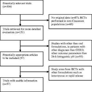 All available clinical studies reporting the effects of PPIs on mean 24-h intragastric pH were sought from electronic databases including Medline. Studies included were restricted to those targeting the Caucasian population, and healthy volunteers or gastroesophageal reflux disease (GERD) patients. The dose-effect relationships for mean 24-h intragastric pH and for percentage of time with pH > 4 in 24 h were analyzed for each PPI using pharmacodynamic modeling with NONMEM and a model integrating all available data.