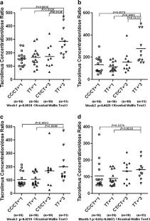 Wang J, Zeevi A, McCurry K, Schuetz E, Zheng H, Iacono A, McDade K, Zaldonis D, Webber S, Watanabe RM, Burckart GJ (2006) Impact of ABCB1 (MDR1) haplotypes on tacrolimus dosing in adult lung transplant patients who are CYP3A5 *3/*3 non-expressors. Transpl Immunol 15:235–240