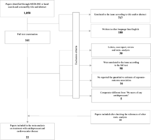 This study aims to systematically review studies quantifying the associations between antidepressants (ADs) use and the risk of cardiovascular (CV) outcomes.