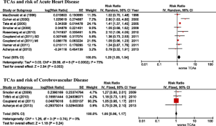 The results of this meta-analysis have to be taken with caution because even though an increased risk of cerebrovascular and acute heart disease was observed respectively in SSRIs and TCA users, the estimates are characterized by a high between study heterogeneity. Moreover, it was not possible to distinguish between the effects of ADs and depression itself. Further well-designed studies are required to confirm this association.