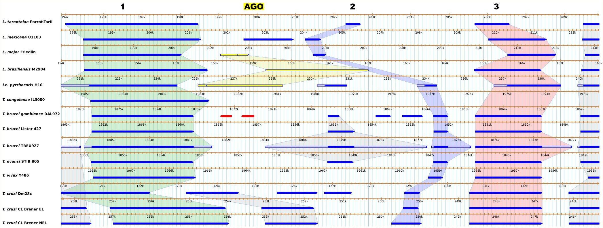 Stoco PH, Wagner G, Travera-Lopez C, Gerber A, Zaha A, Thompson CE, Bartholomeu DC, Lückemeyer DD, Bahia D, Loreto E, Prestes EB, Lima FM, Rodrigues-Luiz G, Vallejo GA, da Silveira Filho JF, Schenkman S, Monteiro KM, Tyler KM, de Almeida LGP, Ortiz MF, Chiurillo MA, de Moraes MH, de Lima Cunha O, Mendonça-Neto R, Silva R, Teixeira SMR, Murta SMF, Sincero TCM, de Oliveira Mendes TA, Urmenyi TP, Silva VG, DaRocha WD, Andersson B, Romanha AJ, Steindel M, de Vasconcelos ATR, Grisard EC (2014) Genome of the avirulent human-infective Trypanosome—Trypanosoma rangeli. PLoS Negl Trop Dis 8:e3176