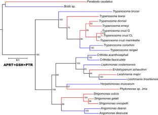 Hughes AL, Piontkivska H (2003) Phylogeny of Trypanosomatidae and Bodonidae (Kinetoplastida) based on 18 S rRNA: evidence for paraphyly of Trypanosoma and six other genera. Mol Biol Evol 20:644–652