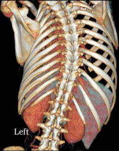 Hepatic epithelioid haemangioendothelioma (HEHE) is extremely rare in children. We present an adolescent who presented with a scoliosis due to left thoracic pain. Multifocal HEHE was incidentally found during CT scan of the thorax, and confirmed with a multiphase CT scan of the abdomen, biopsy and immunochemistry. Left pleural and pulmonary involvement was suspected and later confirmed with biopsy and histopathological examination. The patient died 1 year after diagnosis. To the best of our knowledge, scoliosis has not previously been reported as the first symptom of EHE.