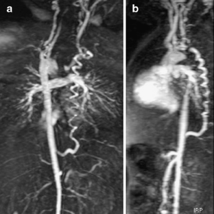 An isolated left subclavian artery is a rare anomaly. We report a 9-month-old boy with an isolated left subclavian artery associated with tetralogy of Fallot and the right aortic arch. MRI and angiography show that the blood supply through the left subclavian artery was maintained by a large tortuous collateral artery from the abdominal aorta. This type of collateral artery structure is unique.
