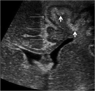 A case of prenatal diagnosis of Sturge-Weber syndrome associated with polymicrogyria is reported. The diagnosis was based on a unique association with unilateral hemispheric gyriform calcification, focal hemispheric atrophy and white matter changes on prenatal imaging including ultrasound and MRI. Polymicrogyria, which is exceptionally associated with Sturge-Weber syndrome, is suggestive of and reinforces the hypothesis of early impairment of the cerebral microvasculature related to leptomeningeal angioma, which may lead to abnormal cerebral development as early as the second trimester of pregnancy.