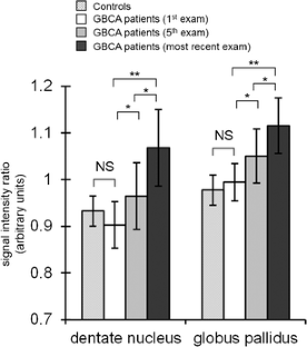 Roberts DR, Holden KR (2015) Progressive increase of T1 signal intensity in the dentate nucleus and globus pallidus on unenhanced T1-weighted MR images in the pediatric brain exposed to multiple doses of gadolinium contrast. Brain Dev 38:331–336