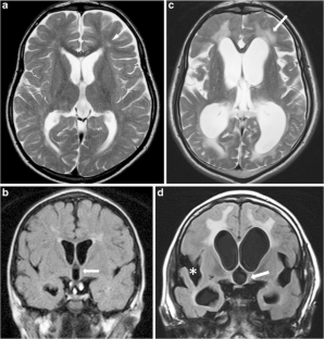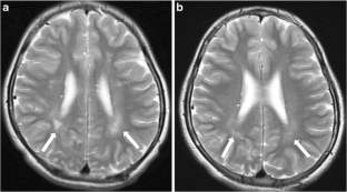 We performed brain MRI in 17 children and young adults who underwent ERT. The clinical severity was classified as attenuated or severe by a specialist pediatrician, based on the clinical symptoms and genotypes. At the start of ERT, we scored nine parameters using two- or three-point scales based on the severity of the disease revealed on MRI scans. After the start of ERT, we compared the initial and follow-up MRI scans, and classified the findings as no change, improved or worse. We then compared the results with the changes in clinical findings.