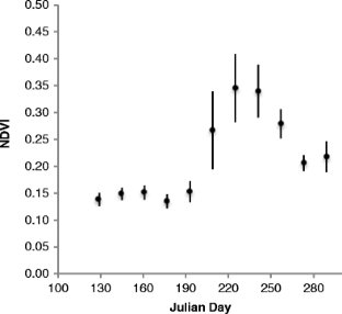 Visual observations of the grassland before (Julian Day 174), during (Julian Day 201), and after (Julian Day 224) monsoon rains (PPTX 616 kb)