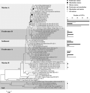 Auguet JC, Casamayor EO (2013) Partitioning of Thaumarchaeota populations along environmental gradients in high mountain lakes. FEMS Microbiol Ecol 84:154–164