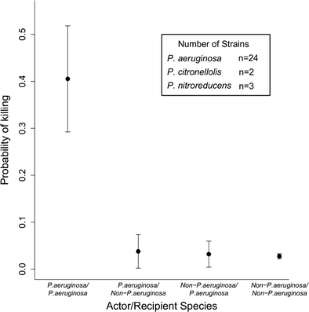 Schoustra SE, Dench J, Dali R, Aaron SD, Kassen R (2012) Antagonistic interactions peak at intermediate genetic distance in clinical and laboratory strains of Pseudomonas aeruginosa. BMC Microbiol 12:40. doi:10.1186/1471-2180-12-40
