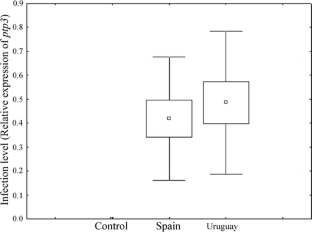 The authors wish to thank the researchers who sent the N. ceranae samples: M. Basualdo and M. Porrini (Argentina), E. Texeira and D. Message (Brazil), C. Castillo (Canada), M. Rodríguez and J. Martínez (Chile), and E. Santos and Y. Mendoza (Uruguay). The authors also thank C. Chambón, S. Díaz-Cetti, and G. Ramallo from Apiculture Section of INIA La Estanzuela (Uruguay) and C. Rodriguez, V. Albendea, and T. Corrales from the Honey Bee Pathology Laboratory (Spain) for their technical support.