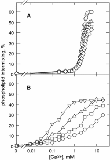 Meers P, Hong K, Papahadjopoulos D (1988) Free fatty acid enhancement of cation-induced fusion of liposomes: synergism with synexin and other promoters of vesicle aggregation. Biochemistry 27:6784–6794
