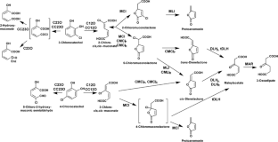 Vollmer MD, Schlömann M (1995) Conversion of 2-chloro-cis,cis-muconate and its metabolites 2-chloro- and 5-chloromuconolactone by chloromuconate cycloisomerase of pJP4 and pAC27. J Bacteriol 177:2938–2941