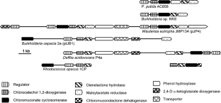 Ogawa N, Miyashita K (1999) The chlorocatechol-catabolic transposon Tn5707 of Alcaligenes eutrophus NH9, carrying a gene cluster highly homologous to that in the 1,2,4-trichlorobenzene-degrading bacterium Pseudomonas sp. strain P51, confers the ability to grow on 3-chlorobenzoate. Appl Environ Microbiol 65:724–731