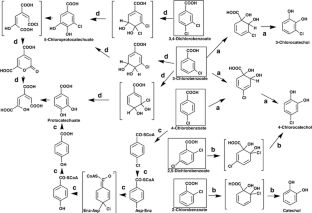 Potrawfke T, Armengaud J, Wittich RM (2001) Chlorocatechols at positions 4 and 5 are substrates of the broad-spectrum chlorocatechol 1,2-dioxygenase Pseudomonas chlororaphis RW71. J Bacteriol 183:997–1011