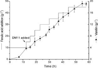 Muheim A, Lerch K (1999) Towards a high-yield bioconversion of ferulic acid to vanillin. Appl Microbiol Biotechnol 51:456–461