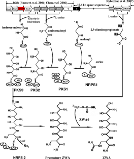 Shao T, Bai L, Zhang J, Wang G, Liu D, Li Z, Liu J, Song F, Huang D (2008) A nonribosomal peptide synthetase gene tzw1 is involved in zwittermicin A biosynthesis in Bacillus thuringiensis G03. Curr Microbiol 57(1):61–65