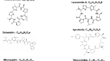 Ishida K, Nakagawa H, Murakami M (2000) Microcyclamide, a cytotoxic cyclic hexapeptide from the cyanobacterium Microcystis aeruginosa. J Nat Prod 63:1315–1317