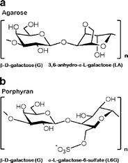 Jam M, Flament D, Allouch J, Potin P, Thion L, Kloareg B, Czjzek M, Helbert W, Michel G, Barbeyron T (2005) The endo-beta-agarases AgaA and AgaB from the marine bacterium Zobellia galactanivorans: two paralogue enzymes with different molecular organizations and catalytic behaviours. Biochem J 385703–385713