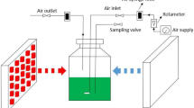 D. salina was purchased from the University of Texas (UTEX LB #200) and grown in Gg-8 medium [see Table S1 in the Electronic supplementary material (ESM)] by modifying Gg medium (Jahnke 1999) at 25 ± 2 °C. Culture pH was regulated between 6.5 and 7.5, unless otherwise indicated. Seed culture of D. salina cells was grown under lower light intensity (85 μE/m2/s) of red LED lighting till late exponential phase and then used in different experiments. In all experiments, D. salina was grown for 5 days, unless otherwise indicated. The initial biomass concentration for all experiments was relatively high (A 660nm > 1.0), and it was assumed that the supplied light measured on the inner surface of PBR was all absorbed by D. salina cells during batch culture.