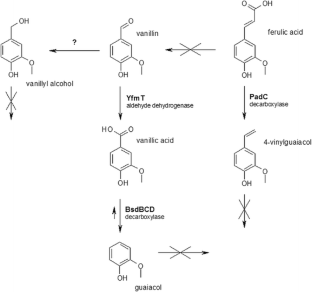 Lupa B, Lyon D, Shaw LN, Sieprawska-Lupa M, Wiegel J (2008) Properties of the reversible nonoxidative vanillate/4-hydroxybenzoate decarboxylase from Bacillus subtilis. Can J Microbiol 54:75–81. doi:10.1139/W07-113
