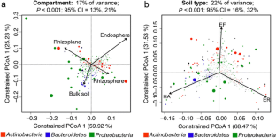 Gottel NR, Castro HF, Kerley M, Yang Z, Pelletier DA, Podar M, Karpinets T, Uberbacher E, Tuskan GA, Vilgalys R, Doktycz MJ, Schadt CW (2011) Distinct microbial communities within the endosphere and rhizosphere of Populus deltoids roots across contrasting soil types. Appl Environ Microbiol 77:5934–5944. https://doi.org/10.1128/AEM.05255-11