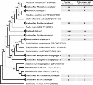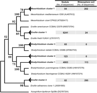 Hakim, S., Mirza, B.S., Zaheer, A. et al. Retrieved 16S rRNA and nifH sequences reveal co-dominance of Bradyrhizobium and Ensifer (Sinorhizobium) strains in field-collected root nodules of the promiscuous host Vigna radiata (L.) R. Wilczek. Appl Microbiol Biotechnol 102, 485–497 (2018). https://doi.org/10.1007/s00253-017-8609-6