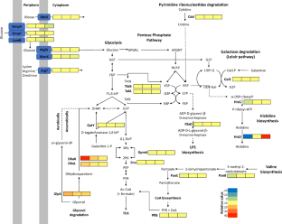 Flores N, Flores S, Escalante A, de Anda R, Leal L, Malpica R, Georgellis D, Gosset G, Bolívar F (2005) Adaptation for fast growth on glucose by differential expression of central carbon metabolism and gal regulon genes in an Escherichia coli strain lacking the phosphoenolpyruvate:carbohydrate phosphotransferase system. Metab Eng 7:70–87. https://doi.org/10.1016/j.ymben.2004.10.002