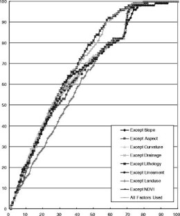 The susceptibility of landslides and the effect of landslide-related factors at Penang in Malaysia using the geographic information system (GIS) and remote sensing data have been evaluated. Landslide locations were identified in the study area from interpretation of aerial photographs and from field surveys. Topographical and geological data and satellite images were collected, processed, and constructed into a spatial database using GIS and image processing. The factors chosen that influence landslide occurrence were: topographic slope, topographic aspect, topographic curvature and distance from drainage, all from the topographic database; lithology and distance from lineament, taken from the geologic database; land use from Landsat Thermatic Mapper (TM) satellite images; and the vegetation index value from SPOT HRV (High-Resolution Visible) satellite images. Landslide hazardous areas were analyzed and mapped using the landslide-occurrence factors employing the probability–frequency ratio method using the all factors. To assess the effect of these factors, each factor was excluded from the analysis, and its effect verified using the landslide location data. As a result, all factors had relatively positive effects, except lithology, on the landslide susceptibility maps in the study area.