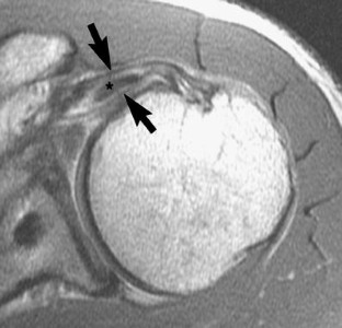 The objective was to describe the imaging appearances and location of delamination tears of the rotator cuff tendons on non-contrast conventional MR imaging.